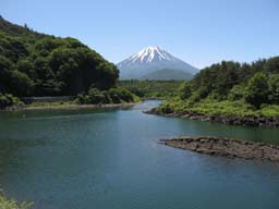 樹海の中を走り溶岩のため妙な形をした精進湖をのそばを走ります。少しだけ遠くなりましたがここでもとっても美しい富士山が見えています。梅雨時期に雲一つない晴天は珍しいです。ここで進路を北にとります。坂をずっと下って、芦川村まで走りました。上九一色から芦川までの道は、ほとんど車も通らず、渓谷の中の道でした。しかし、ジュースが飲みたいのに、自動販売機もなし、昼食食べようかなと思っていたのですが、それらしい店もみあたらない村でした。 空腹のまま来た道を登り精進湖に戻ってきました。ぐるりと湖の周りを走り、美しい森の中を走り、本栖湖まで来ました。本栖湖の西から見える富士山は、とっても美しく、多くの人が写真を撮影していました。携帯電話で撮影している人、ふつうのデジカメで撮影している人、すごく高そうなカメラで撮影している人など様々でした。こんなに天気のいい日は滅多にないのだろうな。ここで、ホームページの表紙の候補?の写真も撮影してみました。うまくいけばトップページに張ります。本栖湖の西からの富士山は、5000円札でも有名です。富士山の写真が貼られてる看板には、水面に反射している富士山が写っています。しかし、何枚撮影してもそんな写真は撮れません。適切なフィルターを通せば水面が鏡のように富士山が写った写真が撮影できるのかと思いましたが、よくわかりません。 国道300号本栖みちのを下ります。芦川と違って、もう坂は上らなくていいので気分は爽快です。途中南アルプス展望台という、南アルプスの山々が少し見える展望台がありました。後ろを見るともう富士山は見えなくなっていましたけど。下るにつれてだんだん暑くなってきます。下部町から照坂トンネルを通って六郷町に出ようとしましたが、工事中通行止。少し遠回りをして六郷町に到着しました。この町は日本一の印鑑の産地であり、地場産業会館で展示があるのですが、15時までなので見れませんでした。週末くらい夕方までやっててもいいのに。 富士川を越え、60ヘルツだったかな?と思いながら52号線と南アルプス公園線を走り、早川村に向かいました。車も少なく、渓谷の底を走る道はサイクリングに良さそうです。とりあえず早川村役場近くの、南アルプスプラザまで走りました。ここで休憩して今回は引き返します。この先ずっと走りたいんですけど、約50km先南アルプス林道は、自然保護のため、バスとタクシー以外は通行禁止。自転車くらいとおしてくれてもいいのに。 来た道を引き返し、下部温泉に着きました。現在時刻17:20 帰りの電車は18:44 温泉に入るのにちょうど良さそうです。ところが、走ってみてもホテル以外の温泉がみあたりません。早川村役場で頂いた、身延線沿線の観光ガイドに、日帰り入浴が可能な温泉が書いてあったので、そのホテルに行ってみます。 フロントのお姉さん「今日は宿泊の方が多いので、入浴のみはお断りしています。」 「ここに書いているのですよ。お断りすることがありますとは書いてないですよ。」 「下部ホテルには行かれましたか?」 「3時までと書いてます。」 「申し訳ないのですが...」 「これを見て自転車で坂を登って来たのですよ。わざわざうその広告をしているのですか?」 フロントの別の人「どうぞお入りください。」 交渉成功! 決して安くない1000円を払って温泉へ。サイクリングの後の温泉はとっても気持ちがいいです。今回は無事入れたからよかったものの、入れなかった場合は、下部温泉の印象が最悪になるところでした。たとえば、九州の「日田温泉」は、ガイドブックでは日帰り利用可能と書いてあっても、数軒回って断られ、結局温泉に入れず、とっても悪い印象を持ったこともありました。温泉によっては公衆浴場がないところもあります。 温泉でゆっくりしたあと、下部温泉駅まで走り、いつものように自転車を分解、袋に入れて、電車で戻りました。 走行距離120km |