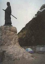 室戸岬。誰かの像の裏にテントを張りました。(笑)